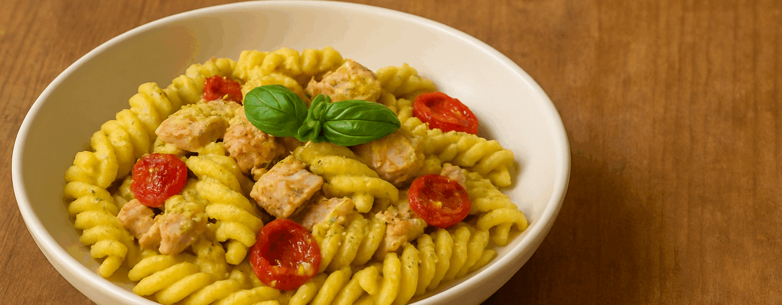 Un primo piatto di mare e terra che profuma di Sicilia, dove la dolcezza del ciliegino incontra la sapidità del tarantello di tonno rosso e la cremosità del pistacchio.